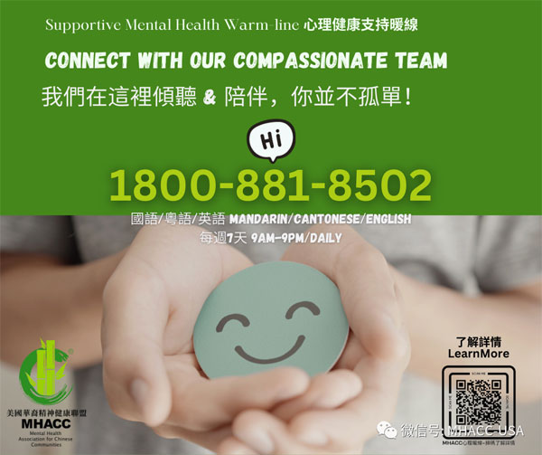 溫暖的擁抱 美國(guó)華裔精神健康聯(lián)盟心理健康暖線啟動(dòng)