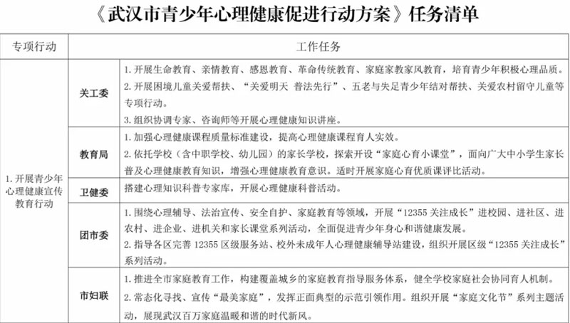 武漢市青少年心理健康促進(jìn)行動(dòng)方案(2023-2025)