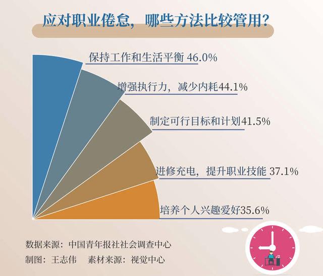 發(fā)布時間:2024-01-15 11:20:44 | 來源:中國網(wǎng)心理中國 | 作者:孫山等工作和生活越來越分不開?即使不工作,也覺得很累?不久前,中國青年報社社會調查中心聯(lián)合問卷網(wǎng)(wenjuan.com),對1000名職場人士進行的一項調查顯示,66.2%的受訪職場人士感覺工作上的倦怠感在向生活蔓延,52.6%的受訪職場人士表示工作上的倦怠感會影響情緒穩(wěn)定,容易焦慮內(nèi)耗。個人該怎樣應對工作倦???46.0%的受訪職場人士認為要維持好工作和生活平衡,44.1%的受訪職場人士認為需增強執(zhí)行力,減少內(nèi)耗。