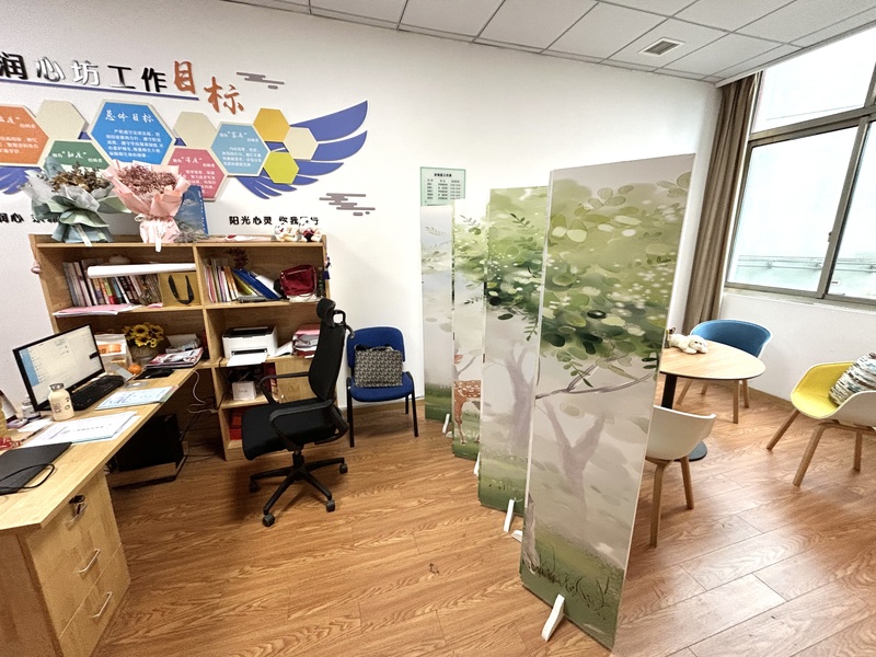 “2021年前后,學(xué)校將包括潤(rùn)心工作坊在內(nèi)的整層樓騰出來,專門打造心理健康輔導(dǎo)、培訓(xùn)和開展部分活動(dòng)的區(qū)域。由此,有了個(gè)輔室、團(tuán)輔室、身心放松和沙盤游戲室、情緒疏導(dǎo)室等?!本毘山榻B,隨著硬件改造完工,2022年學(xué)校迎來首位專職心理教師——賈麗媛。