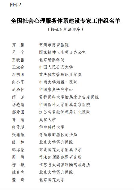 3.全國(guó)社會(huì)心理服務(wù)體系建設(shè)專(zhuān)家工作組名單