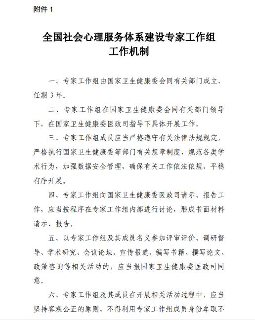 1.全國(guó)社會(huì)心理服務(wù)體系建設(shè)專(zhuān)家工作組工作機(jī)制