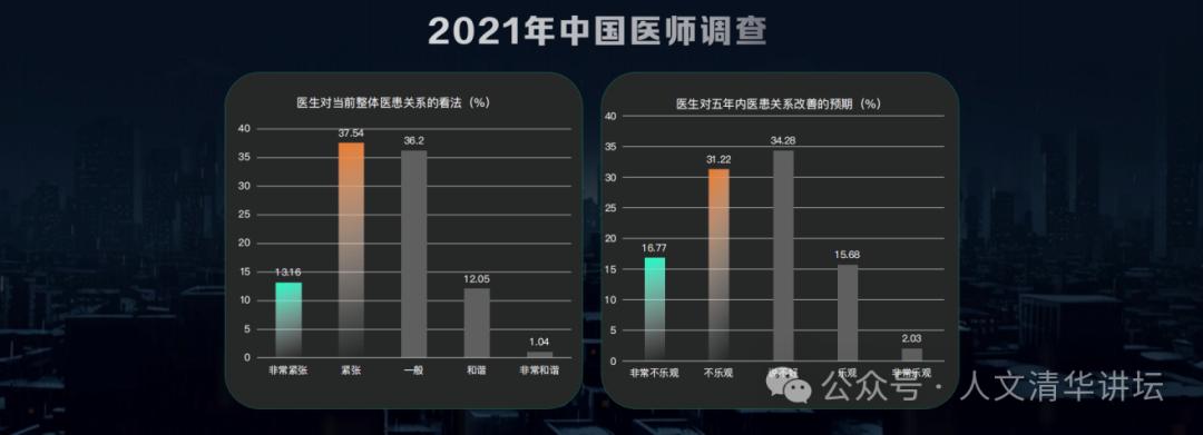基于前面如此高強度的工作過程,醫(yī)生們已經為患者們付出了很多,但超過50%的醫(yī)生覺得醫(yī)患關系不太融洽,稍少于50%的醫(yī)生認為,在接下來的5年間,醫(yī)患關系改善的機會并不高。