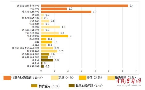圖1中國青少年主要心理健康問題發(fā)生率(%)