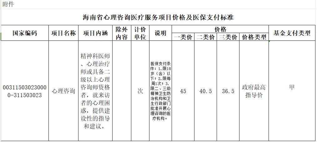 附件:海南省心理咨詢醫(yī)療服務項目價格及醫(yī)保支付標準