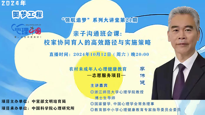 心理中國10月12日20:00回放:校家協(xié)同育人的高效路徑與實(shí)施策略
