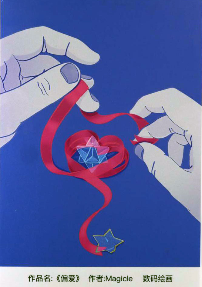 《偏愛》親子關(guān)系里,父母對孩子們的偏愛,如同畫里的兩只手“關(guān)愛”的是那顆堅固完整的六芒星,而不是角落里更需要關(guān)愛的缺了角的星星。