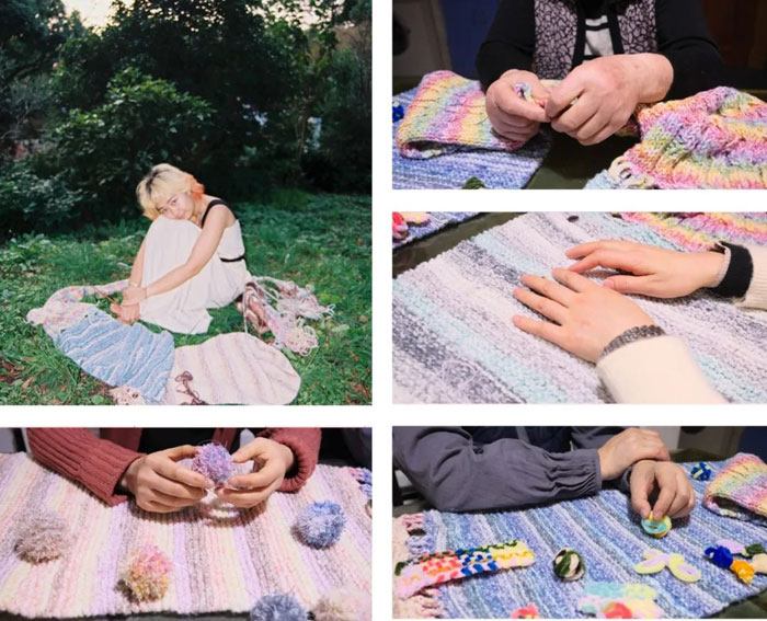 這件作品以毛線編織為媒介,探索了我的家庭成員不同時代的經(jīng)歷,以及她們在家庭中的角色與聯(lián)結(jié)。每塊織片都由家庭成員完成,獨(dú)特的裝飾則象征著各自鮮明的個性與彼此間復(fù)雜而深厚的情感。