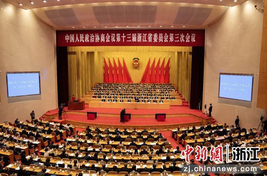 1月13日,中國(guó)人民政治協(xié)商會(huì)議第十三屆浙江省委員會(huì)第三次會(huì)議在杭州開幕。圖為第一次全體會(huì)議現(xiàn)場(chǎng)。中新社記者吳君毅攝