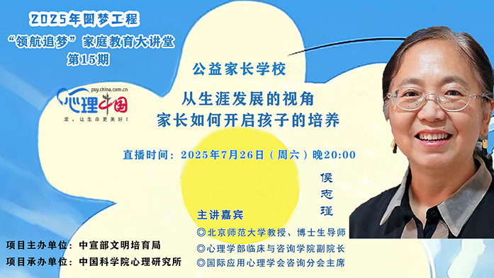 發(fā)布時間:2025-07-25 13:48:17 | 來源:中國網(wǎng)心理中國 | 作者:辛理中國網(wǎng)心理中國7月25日訊 7月26日(周六)晚20:00,中國網(wǎng)心理中國繼續(xù)聯(lián)合中科院心理研究所開啟“領航追夢”家庭教育大講堂心理科普直播講座。