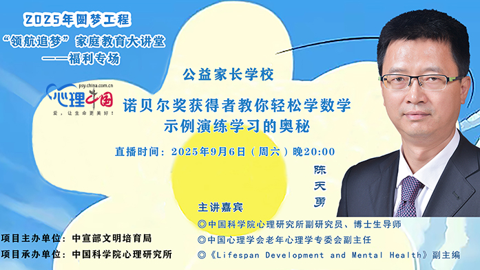 發(fā)布時間:2025-09-05 17:16:11 | 來源:中國網(wǎng)心理中國 | 作者:辛理中國網(wǎng)心理中國9月5日訊 9月6日(周六)晚20:00,中國網(wǎng)心理中國繼續(xù)聯(lián)合中科院心理研究所開啟“領(lǐng)航追夢”家庭教育大講堂心理科普直播講座。
