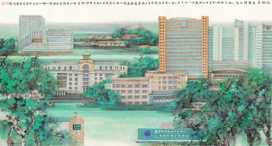 知名畫家汪家芳為上海市精神衛(wèi)生中心建院90周年創(chuàng)作的畫作正在“600號畫廊”展出。