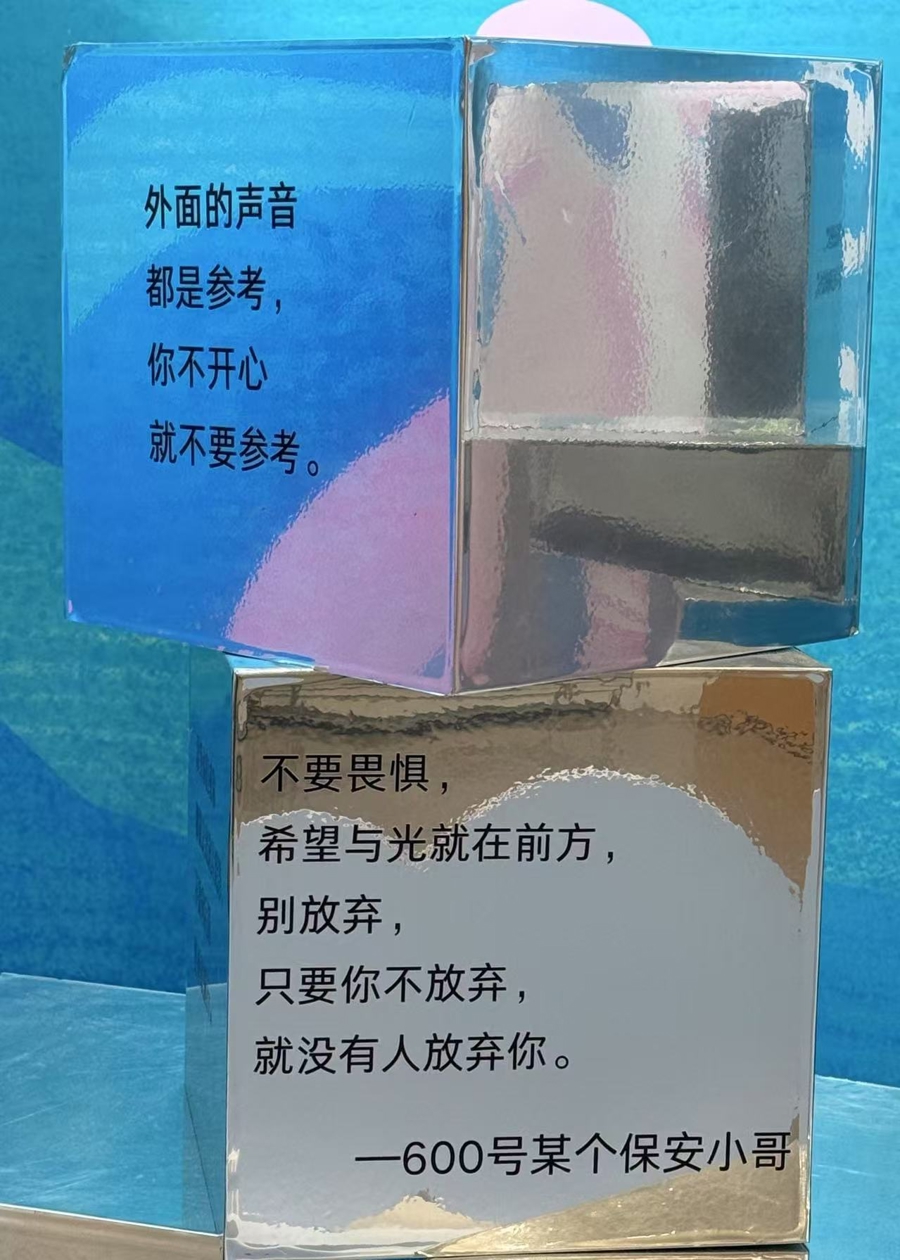 不少患者以及來參觀的公眾都把畫廊的留言墻作為一個抒發(fā)情緒的平臺和心靈的寄托。他們的留言也時常讓我感動,哪怕是迷茫、受傷的靈魂依然抱著對美好生活的向往。而我們也非常愿意為他們打造這樣一座“安全島”,讓他們的心靈得以短暫地???、傾聽、共鳴。
