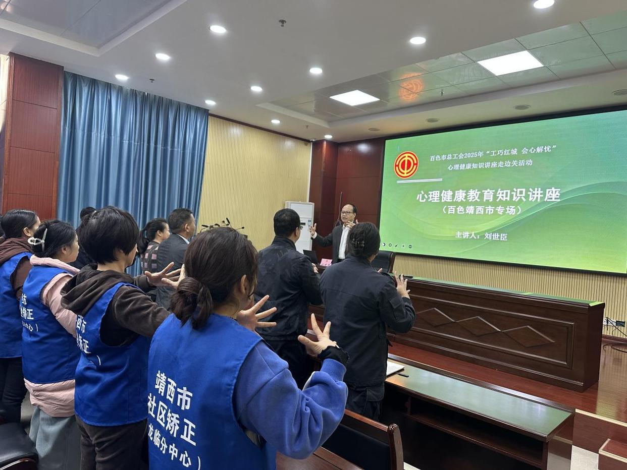 發(fā)布時間:2025-12-05 11:09:56 | 來源:中國網(wǎng)心理中國 | 作者:龐慧敏近日,廣西壯族自治區(qū)百色市總工會2025年“工巧紅城會心解憂”心理健康知識講座活動圓滿結(jié)束。為期5天的活動走進靖西市、那坡縣邊境地區(qū)及百色市城區(qū)等重點區(qū)域,通過17場定制化專場講座,為邊境職工、一線工人、新就業(yè)形態(tài)勞動者、學校教師、消防救援人員、社區(qū)矯正工作人員、困難職工等1000余名職工群眾送去專業(yè)心理健康服務,有效提升了大家的心理調(diào)適能力,筑牢了邊境地區(qū)與城區(qū)職工職場心理防線。