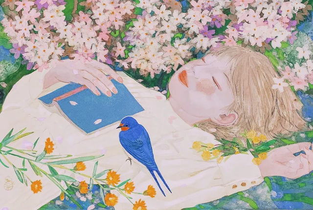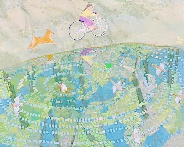她的畫風(fēng)溫暖治愈,她善于用靈敏的心去感知四季的色彩變化,經(jīng)過她的主觀加工,色彩成為她畫面中最扣人心弦的力量,畫面中常常洋溢著清新和絢爛的情緒。