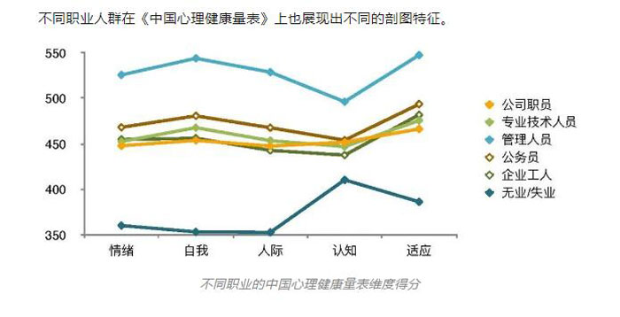 2. 各類職業(yè)群體呈現(xiàn)不同的心理健康特征,差異突出
