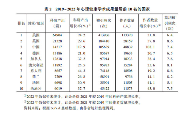 中國在心理學(xué)和心理健康研究領(lǐng)域整體實(shí)力居世界第三2023-08-18