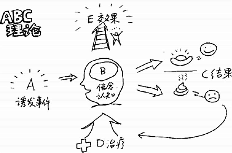 在ABC理論模式中,A(Activating event)是指誘發(fā)性事件,B(Belief)是指個體在遇到誘發(fā)事件之后相應(yīng)而生的信念,即人對這一事件的看法、解釋和評價,C( Consequence)是指特定情景下,個體的情緒及行為的結(jié)果,ABC理論核心是B即信念或觀念合理信念會引起人們對事物恰當(dāng)?shù)?、適度的情緒反應(yīng),而不合理信念則相反,任何挫折事件均具有兩面性,當(dāng)遇到挫折事件時,多從積極的角度看待問題,人們的情緒和行為反應(yīng)往往也是積極的。