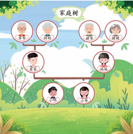 照下圖的樣子畫(huà)出自己原生家庭的“家庭樹(shù)”。然后填寫(xiě)以下內(nèi)容: