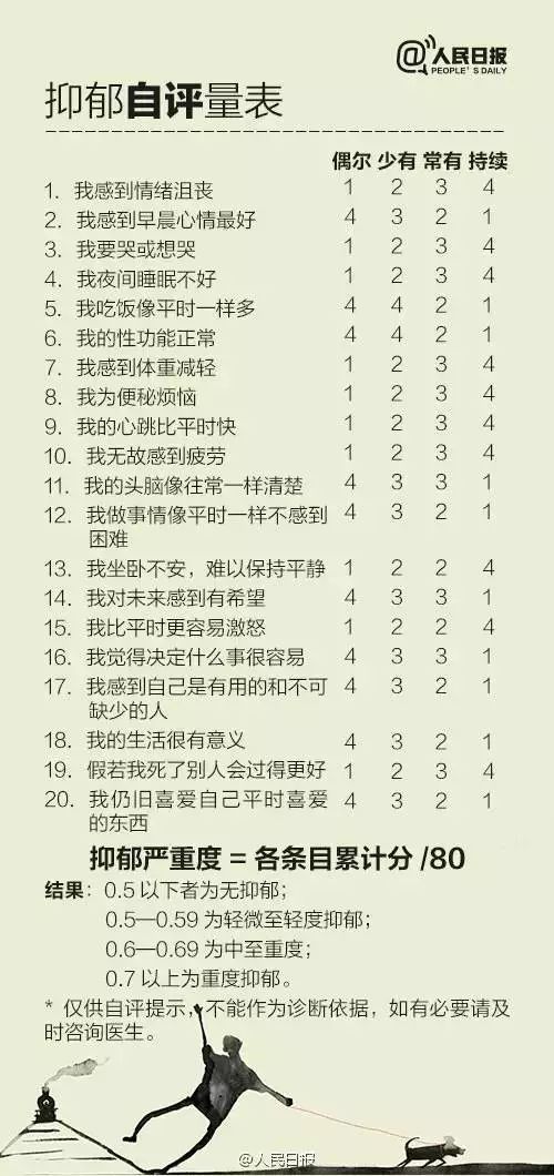 需注意,自評(píng)量表用于評(píng)價(jià)一下自己的心情,提醒自己注意心理健康是可以的。