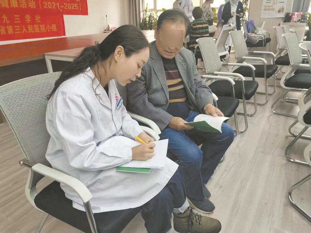 醫(yī)護人員詢問和記錄老年人心理狀況。