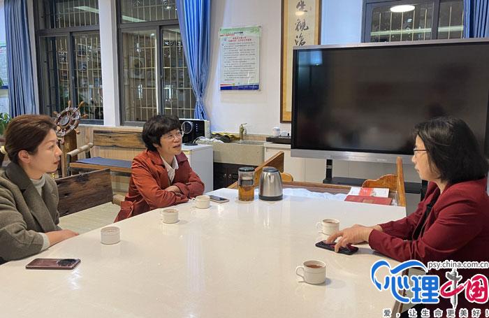講座后林贊歌(右一)繼續(xù)與學(xué)校校長、副校長研討心理健康教育工作。