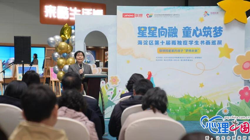 以“星星向融童心筑夢”為主題的北京市海淀區(qū)第十屆孤獨癥學(xué)生書畫展啟動。(中國網(wǎng)心理中國 徐林攝)