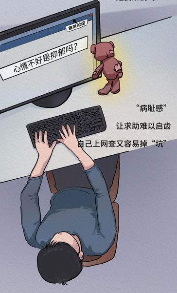 作為曾經(jīng)青少年抑郁癥群體中的一員,張聲說,他學(xué)生時期的病友們大多也在確診前經(jīng)歷了相似自撐的過程,甚至有嚴(yán)重者直到自殺未遂被送至醫(yī)院后,其抑郁問題才終于暴露出來。在確診之前,他們很難在短時間內(nèi)識別自己的病癥,更別提得到相應(yīng)的治療。