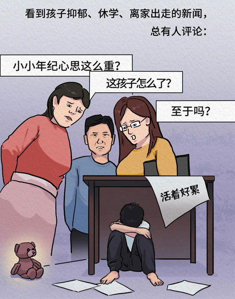 當(dāng)下青少年抑郁問題的成因有其時代特征,劉愛民認(rèn)為,這離不開當(dāng)下社會環(huán)境給予的影響。超長的學(xué)習(xí)時間、家長的憂慮、缺少面對面的人際交流等因素,再加上網(wǎng)絡(luò)虛擬環(huán)境讓他們的“心理垃圾”無法及時“像滾筒洗衣機(jī)一樣甩出去”,這使得當(dāng)下的很多青少年即使到了大學(xué)或之后的階段,也有可能發(fā)展成抑郁障礙。石艾黎也提到,相較于其他國家,中國的兒童和青少年面臨著其相對獨(dú)特的問題,包括越來越大的同伴壓力、課業(yè)與競爭壓力,以及父母對孩子越來越高的期望值。