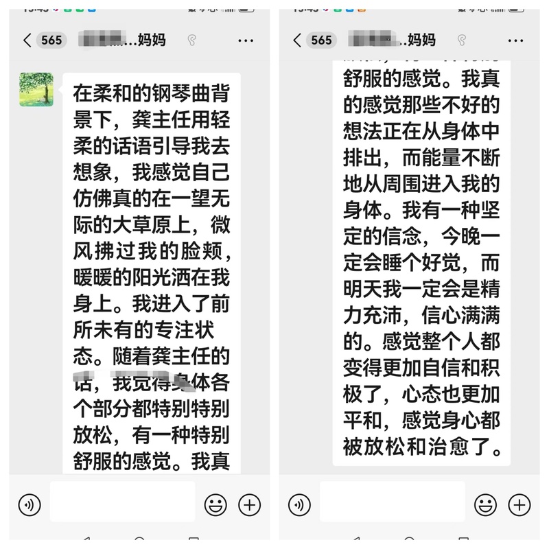 “在動(dòng)聽的鋼琴曲背景下,龔主任用輕柔的話語引導(dǎo)我去想象,我感覺到自己身體完全地放松,來到了曾經(jīng)旅游過的沙灘上。當(dāng)龔主任說到捧起的一捧沙子發(fā)光發(fā)熱,進(jìn)入我的心臟時(shí),我有了一種神奇的感覺,我感覺到一種強(qiáng)烈的沖動(dòng),要立刻行動(dòng)起來,立刻去做些什么,為即將到來的考試而努力,有一種‘坐不住’的感覺……”這是孫同學(xué)在東部戰(zhàn)區(qū)空軍醫(yī)院心理科中高考心理減壓門診一次治療后的反饋。