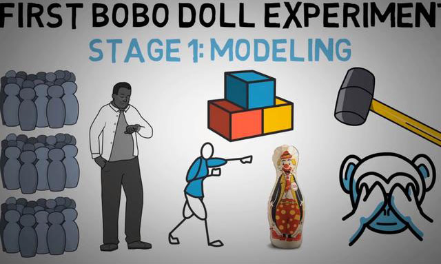 20世紀60年代,美國心理學家阿爾伯特·班杜拉做過著名的波波玩偶(一種與真人體形接近的充氣玩具)實驗,以研究兒童如何習得攻擊性。