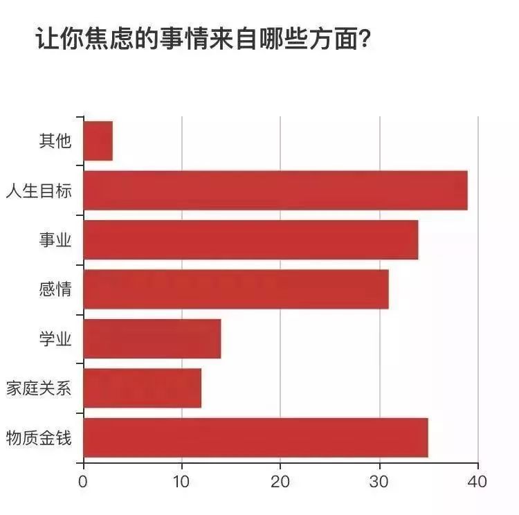 根據(jù)調(diào)查,使我們年輕人最焦慮的三件事是:人生目標、物質(zhì)金錢和事業(yè)。翻譯一下就是:沒目標、窮、還做著不喜歡的工作。