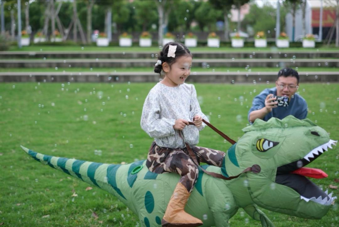 小女孩看著身前的恐龍,周圍滿是夢幻的五彩泡泡,這是她的快樂時光;女孩父親迫不及待拿出手機(jī),記錄此刻,這也是他的快樂時光;按下快門,這也是我,一位確診了孤獨(dú)癥孩子的媽媽的快樂時光。