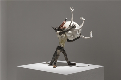 這些動(dòng)畫與雕塑,實(shí)際上是藝術(shù)家重構(gòu)的一個(gè)個(gè)寓言——為成人講的童話故事。這些故事超脫了傳統(tǒng)的敘事結(jié)構(gòu),給人的情緒體驗(yàn)遠(yuǎn)大于理性的邏輯,并由此引領(lǐng)我們離開那個(gè)熟悉的理性世界,進(jìn)入自己都不知道的潛意識(shí)空間。當(dāng)潛意識(shí)中的欲望與情感被打開,我們是否會(huì)重新思考當(dāng)下的自己和所做的決定?(北京青年報(bào)安仔 供圖/里森畫廊)