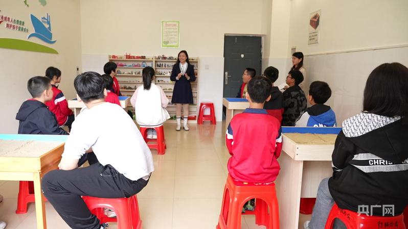 心育教師指導(dǎo)學(xué)生開展主題為“幸福的生活”沙盤游戲(央廣網(wǎng)發(fā)何城基攝)