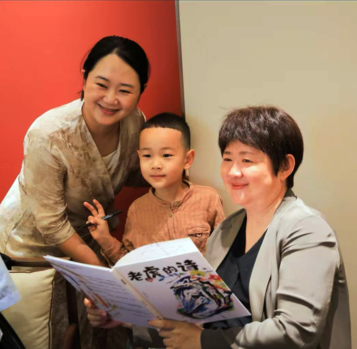 小作者“老虎”和媽媽與著名詩人、中國作家協(xié)會書記處書記何向陽在一起。