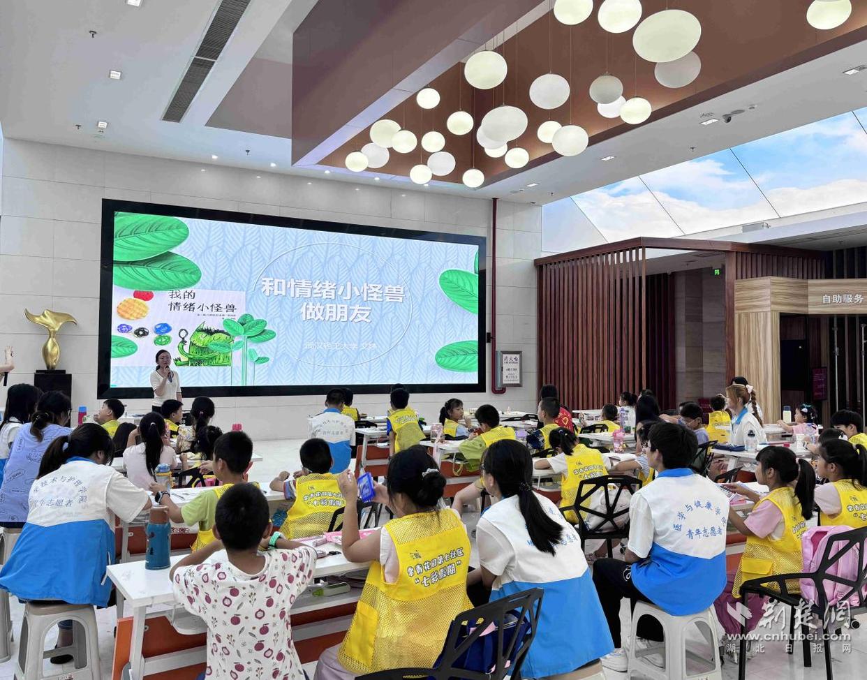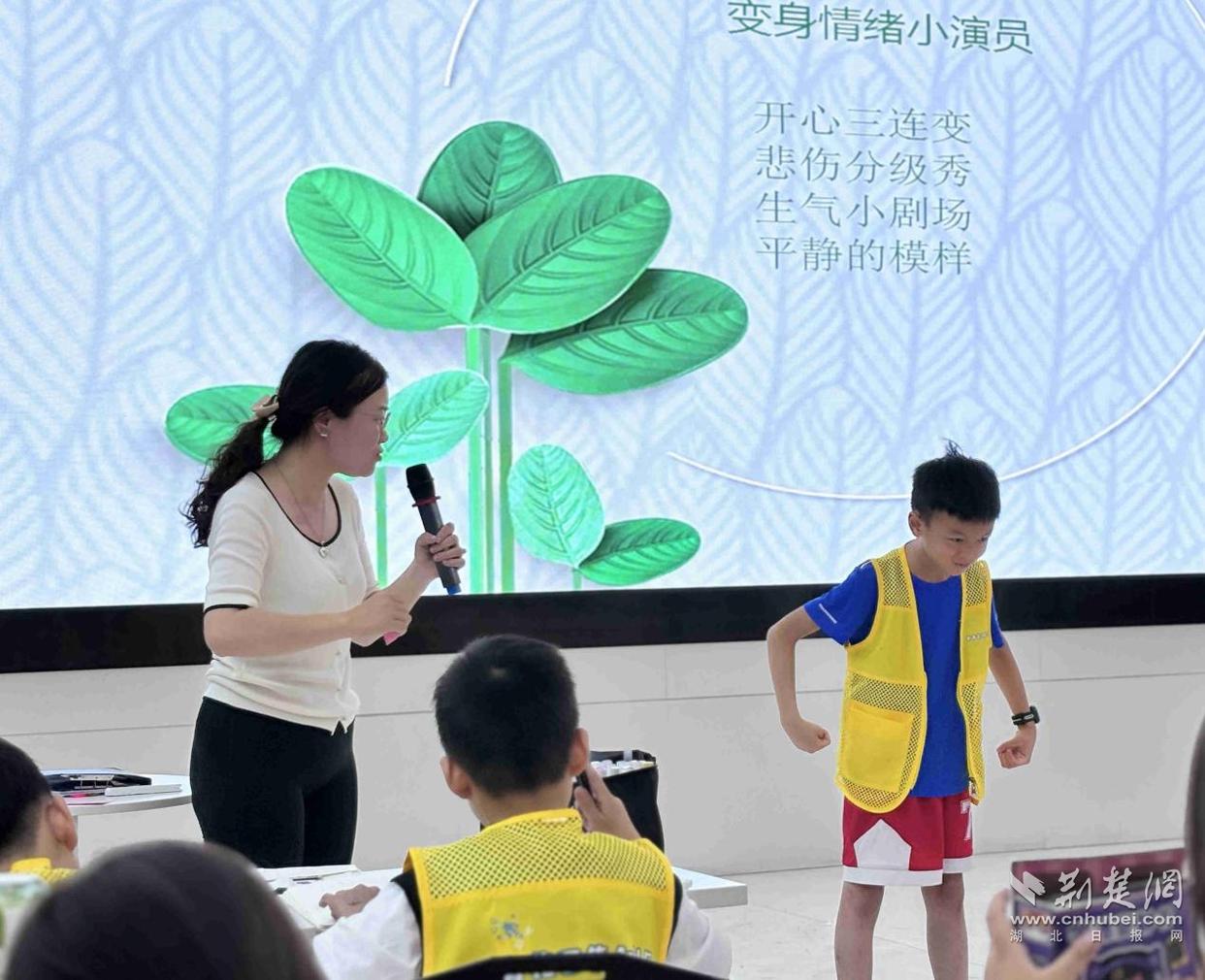 “看到黃色,你會(huì)想到開心還是難過?”在“顏色猜情緒”游戲中,武漢輕工大學(xué)心理中心艾婷老師舉起紅、黃、藍(lán)、綠等彩色卡片提問。孩子們踴躍舉手,積極回答?!凹t色像發(fā)火的太陽(yáng),是生氣?!薄八{(lán)色像下雨天,會(huì)有點(diǎn)難過?!崩蠋熃Y(jié)合聯(lián)想展示對(duì)應(yīng)情緒臉譜,讓抽象情緒與具象顏色產(chǎn)生聯(lián)結(jié),幫孩子們直觀認(rèn)識(shí)情緒的多樣性。