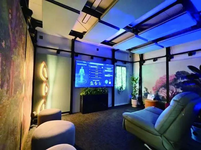療愈艙吸引了眾多觀眾前來(lái)排隊(duì)體驗(yàn).。進(jìn)入療愈艙后,體驗(yàn)者佩戴腦電、HRV等專業(yè)設(shè)備后,仰躺在零重力座椅上,大屏實(shí)時(shí)捕捉腦電活動(dòng),并同步監(jiān)測(cè)心率、血氧飽和度等生理指標(biāo)。不久后,一段融合鳥(niǎo)鳴、微風(fēng)、山間溪流等自然音效的空靈音樂(lè)緩緩響起,現(xiàn)場(chǎng)氛圍沉靜而舒緩。
