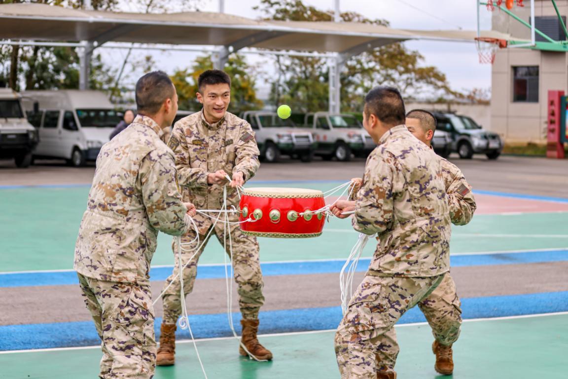 支隊官兵開展團體輔導小游戲“動感顛球”。